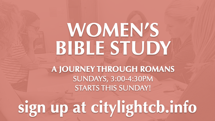 We are elated that you're joining us for our Women's Bible Study this fall. We will walk through the Book of Romans using a study from Jen Wilkin and the Village Church. Starting September 14th, we will meet on Sundays from 3 to 4:30 p.m. at Citylight Council Bluffs.